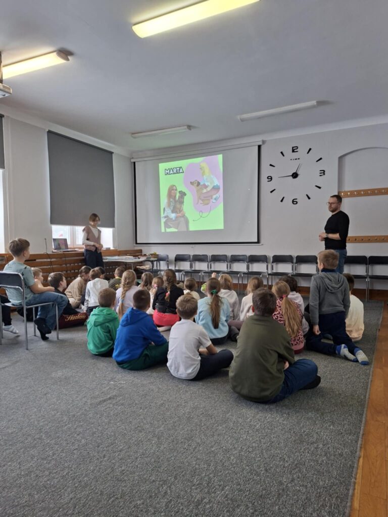 Uczniowie naszej szkoły wzięli udział w wyjątkowych warsztatach edukacyjnych z autorką książki „Przygody psa Precla”, zorganizowanych przez Gminną Bibliotekę Publiczną im. Bronisława Pietrzaka w Garbowie. Spotkanie było skierowane do uczniów klas pierwszych i starszych klas szkoły podstawowej objętych opieką świetlicową. Celem warsztatów było kształtowanie postaw odpowiedzialności wobec zwierząt domowych oraz rozwijanie empatii i zrozumienia dla naszych futrzastych przyjaciół. Podczas zajęć dzieci poznały różne zachowania psów, dowiedziały się, jak prawidłowo dbać o swojego pupila, a także aktywnie uczestniczyły w interaktywnych zabawach i ćwiczeniach związanych z czworonogami. Spotkanie było nie tylko wartościową lekcją edukacyjną, ale również źródłem radości i inspiracji do sięgania po książki oraz pogłębiania wiedzy o świecie zwierząt.