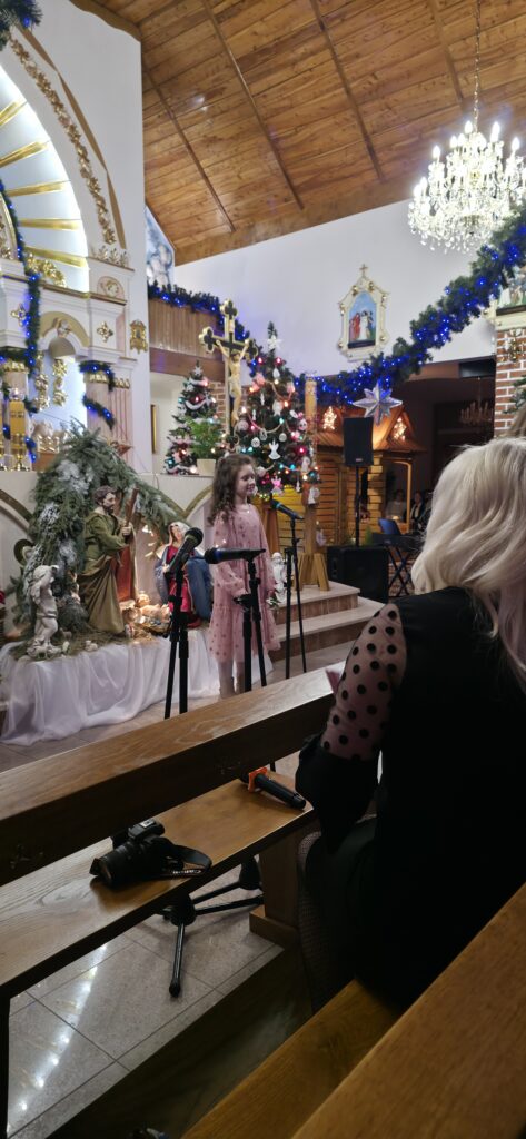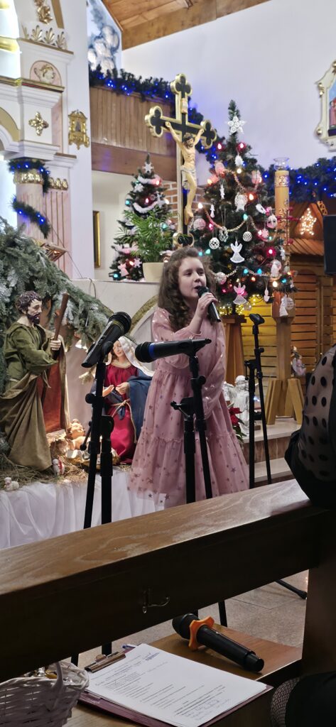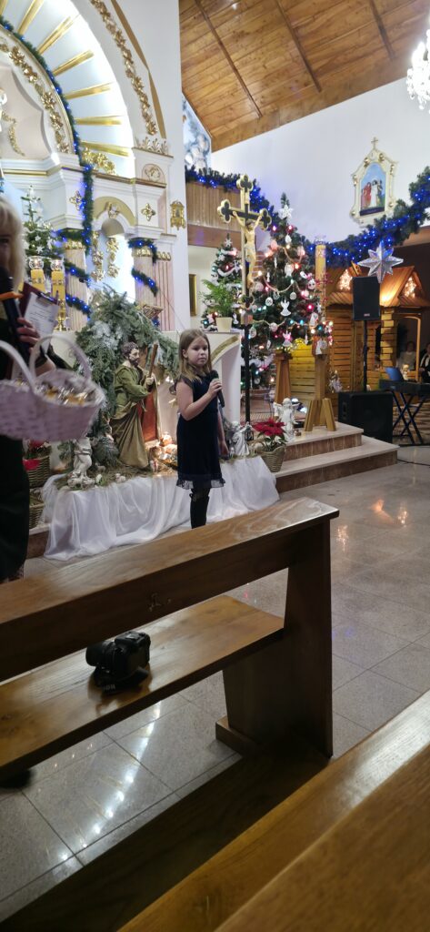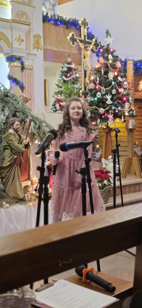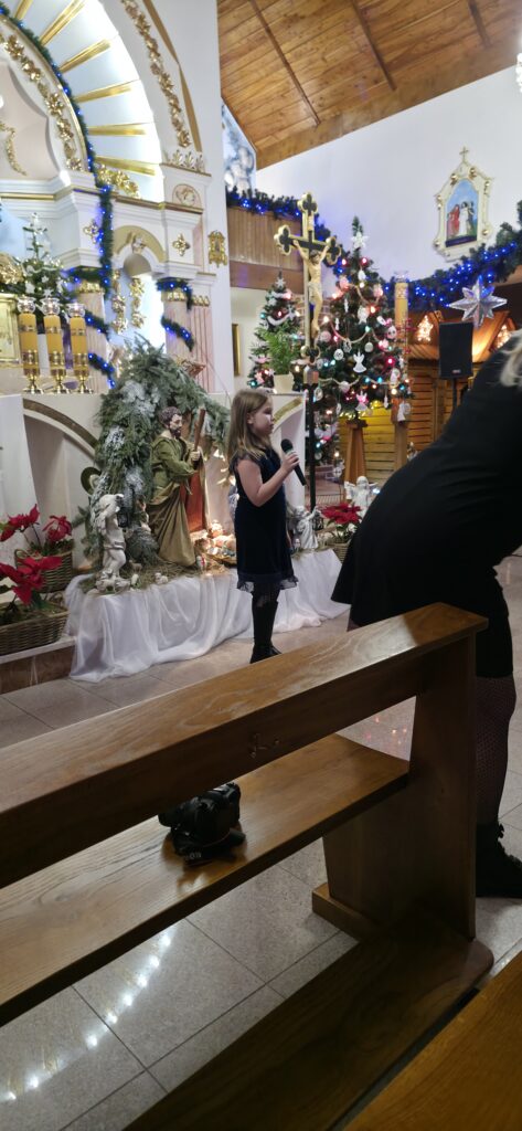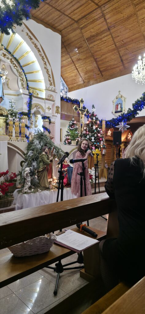 W kościele pw. Macierzyństwa Najświętszej Maryi Panny w Zagrodach odbył się XIV Gminno-Parafialny Przegląd Kolęd i Pastorałek – wyjątkowe wydarzenie, które zgromadziło dzieci, młodzież oraz dorosłych, pragnących wspólnie podtrzymywać piękną tradycję śpiewu kolędowego.Wypełniona świątynia rozbrzmiewała znanymi i mniej znanymi kolędami oraz pastorałkami, niosąc radość, wzruszenie i prawdziwie bożonarodzeniową atmosferę. Każdy występ był świadectwem zaangażowania, talentu i serca włożonego w pielęgnowanie chrześcijańskiego dziedzictwa. Naszą szkołę reprezentowała Zuzanna Wójtowicz z klasy I oraz Lena Capała z klasy V. Dziękujemy za zaangażowanie i przygotowanie tak wspaniałych występów.