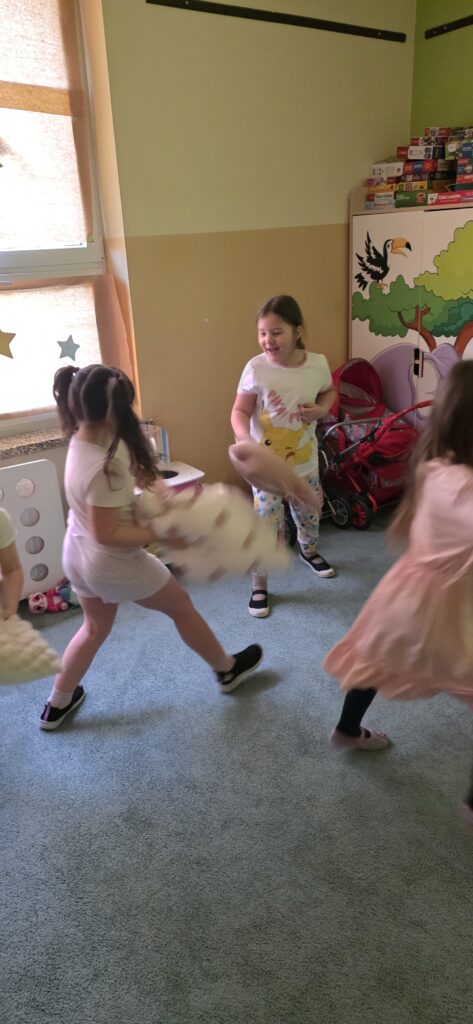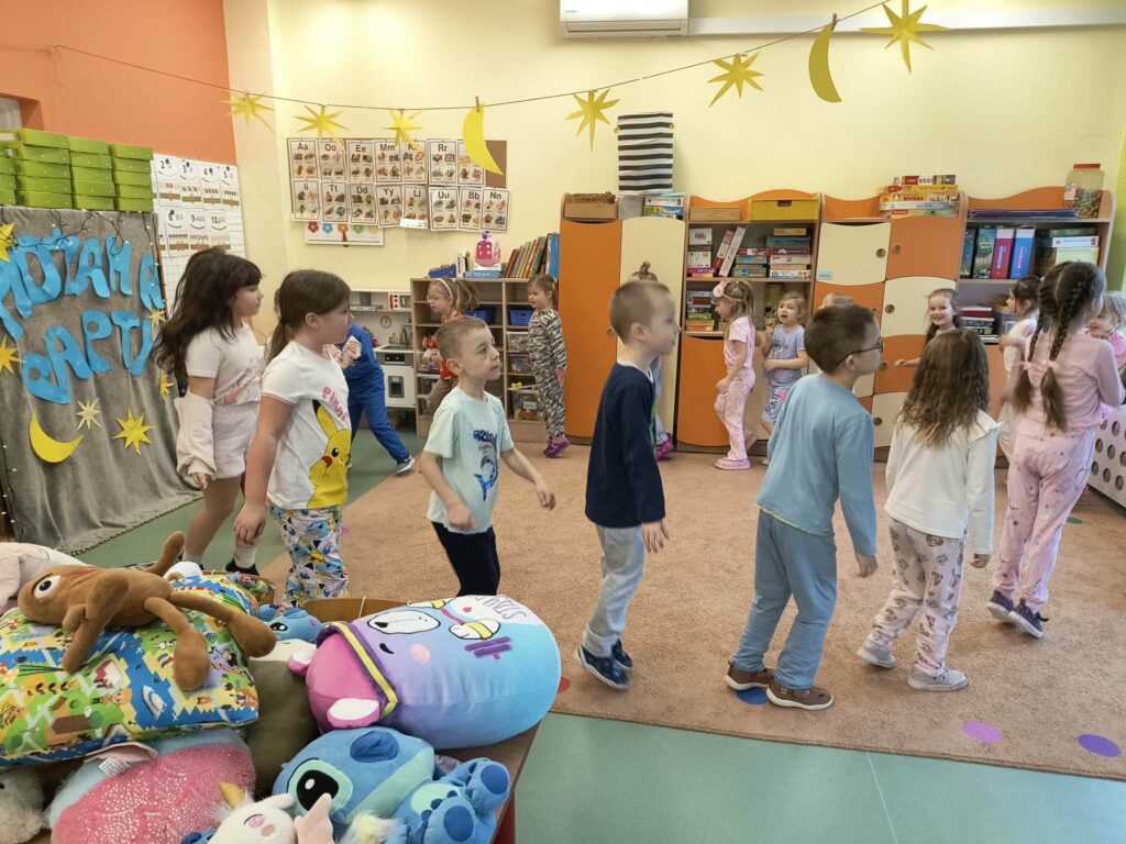 W przedzkolu odbyły się niezwykłe zajęcia- Piżama Party. Były gry, zabawy, projektowanie piżam, pokaz mody i bitwa na poduszki. Dzieci budowały bazę z koców i poduszek. Zapraszamy do obejrzenia galerii zdjęc.