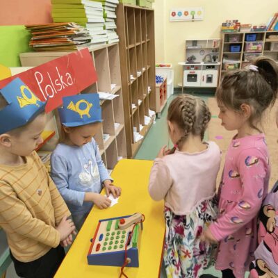W ramach zajęć z języka angielskiego grupa sześciolatków wybrała się na zakupy do szkolnego sklepiku. Dzieci...